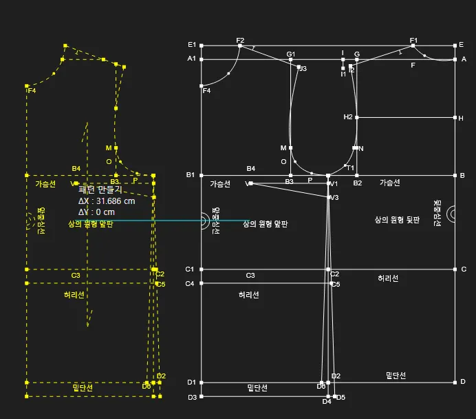 그 상태에서 마우스 오른쪽 클릭하면 같은 위치에 패턴이 만들어지고, 마우스 왼쪽 클릭으로 이동 시작점과 끝점을 선택하면, 이동한 위치에 패턴을 만들 수 있습니다.