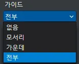 - 전부 : 모서리 & 가운데 모두 가이드선 표시