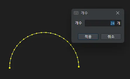 대화상자에 원하는 곡선점 개수를 입력하면 미리보기가 노란 점선으로 나타납니다.