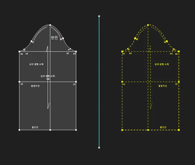 반전 대칭축을 선으로 선택하면 개체들이 반전됩니다.