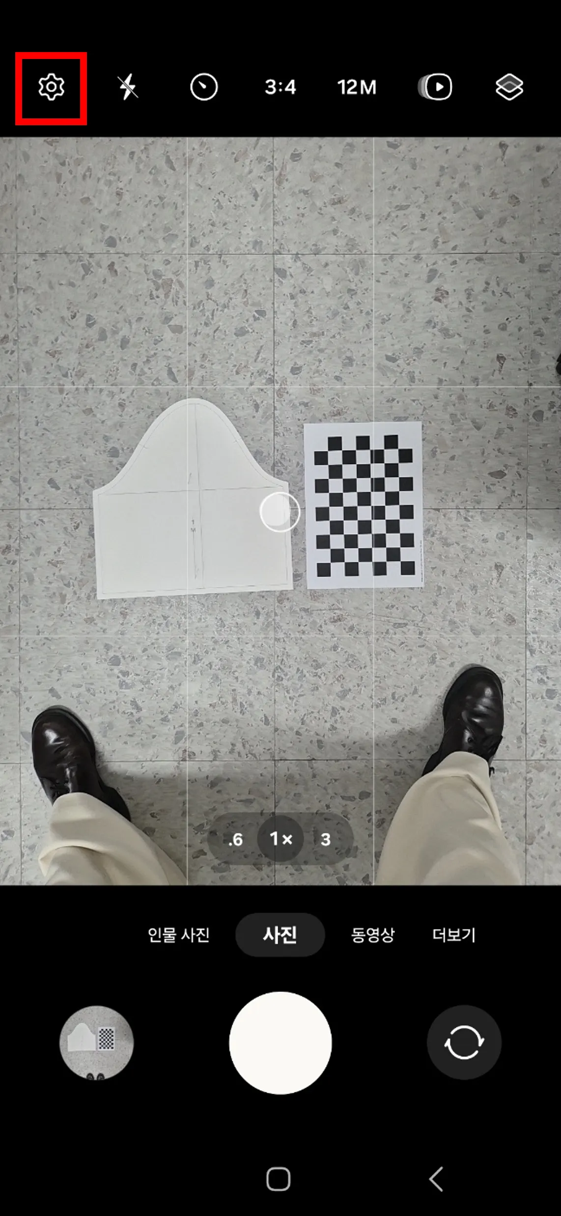 체커보드를 패턴 옆에 혹은 위에 두고 찍을 때