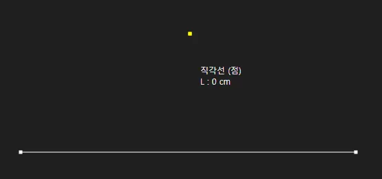마우스 옆의 문자가 ‘점’인 상태는 점에서 선으로 직각선을 그릴 수 있습니다.