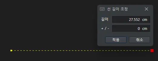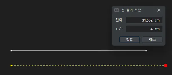 입력값에 따라서 미리보기가 바뀌며, 적용을 클릭하면, 선의 길이가 수정됩니다.