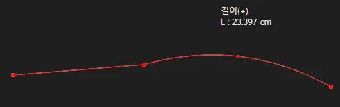 마우스 옆의 문자가 ‘길이(+)’일 때, 선택한 선들의 합이 계산됩니다.