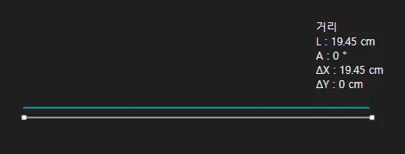 거리를 측정할 시작점과 끝점을 클릭하면 마우스 옆에 치수가 나옵니다.