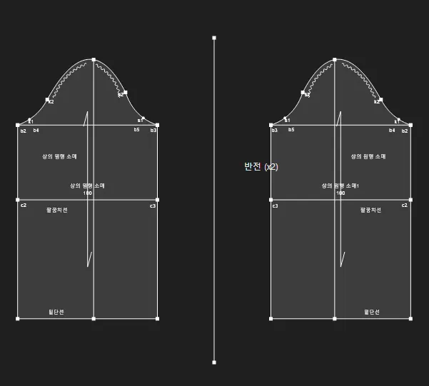 반전 대칭축을 선으로 선택하면 개체들이 반전됩니다.