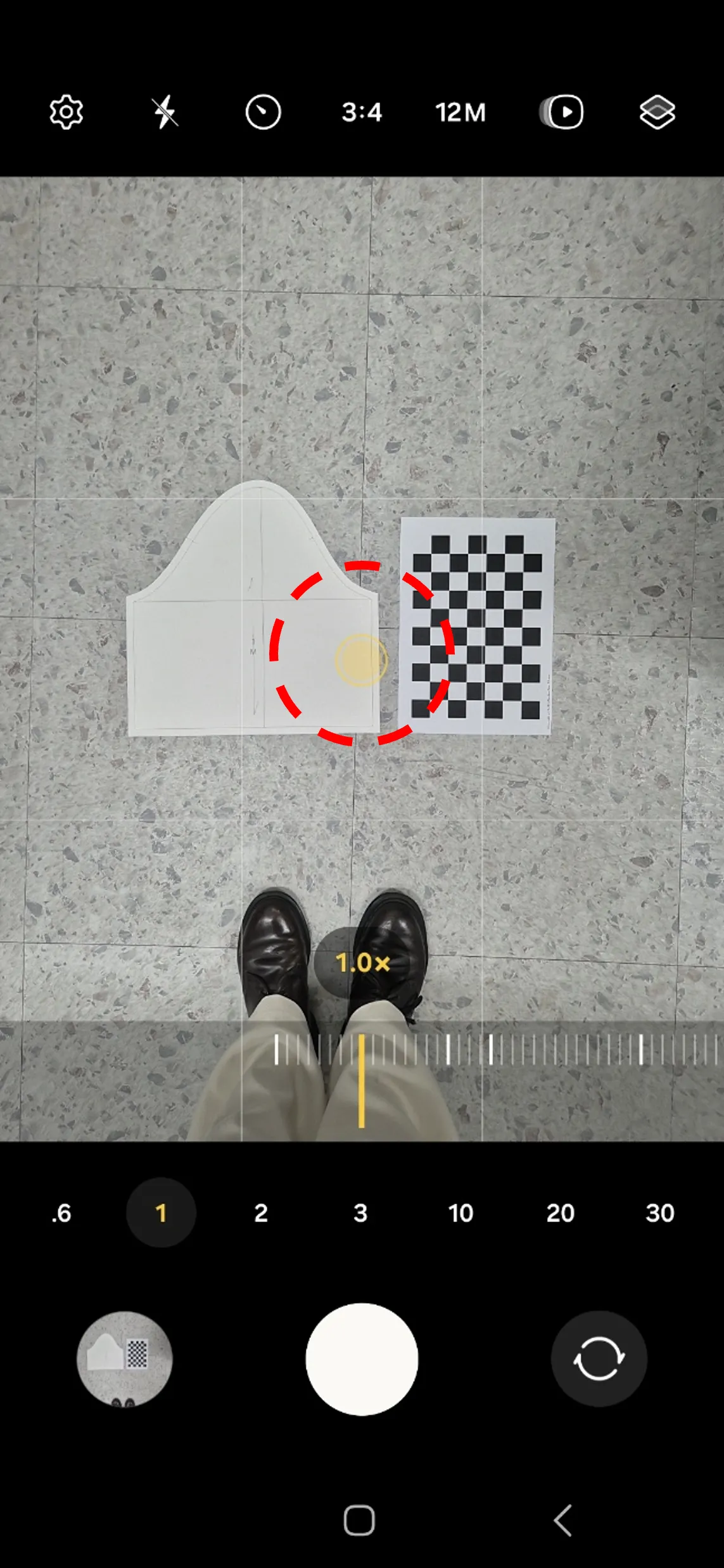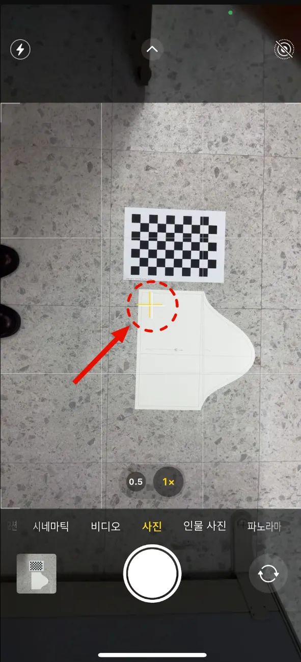체커보드를 패턴 옆에 혹은 위에 두고 찍을 때