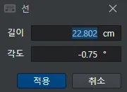 원하는 길이와 각도를 입력하면, 입력값에 따라서 미리보기가 바뀌며,