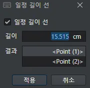 일정 길이 선을 체크하면, ‘일정 길이 선’ 대화상자로 바뀝니다.