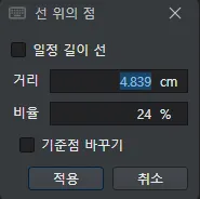)을 선택하면, ‘선 위의 점’ 대화상자가 나옵니다.
