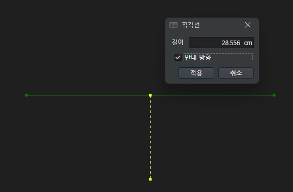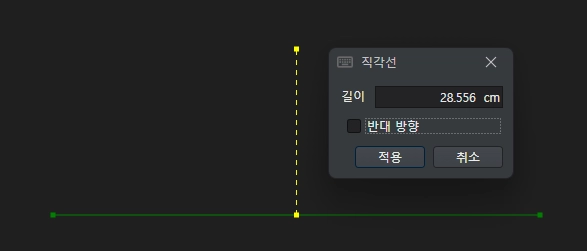 원하는 길이를 입력하면 입력값에 따라서 미리보기가 바뀌며, ‘반대 방향’을 클릭하면 직각선 방향이 바뀝니다.