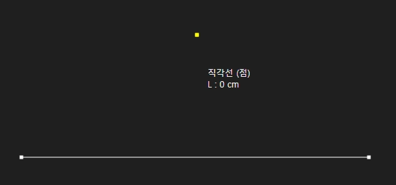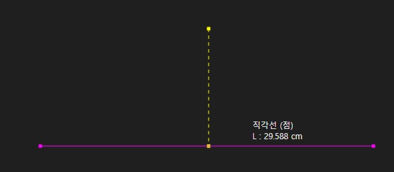 직각선의 기준선 위의 점을 선택하고 마우스를 이동하여 끝점(■)을 선택하면 직각선이 그려집니다.