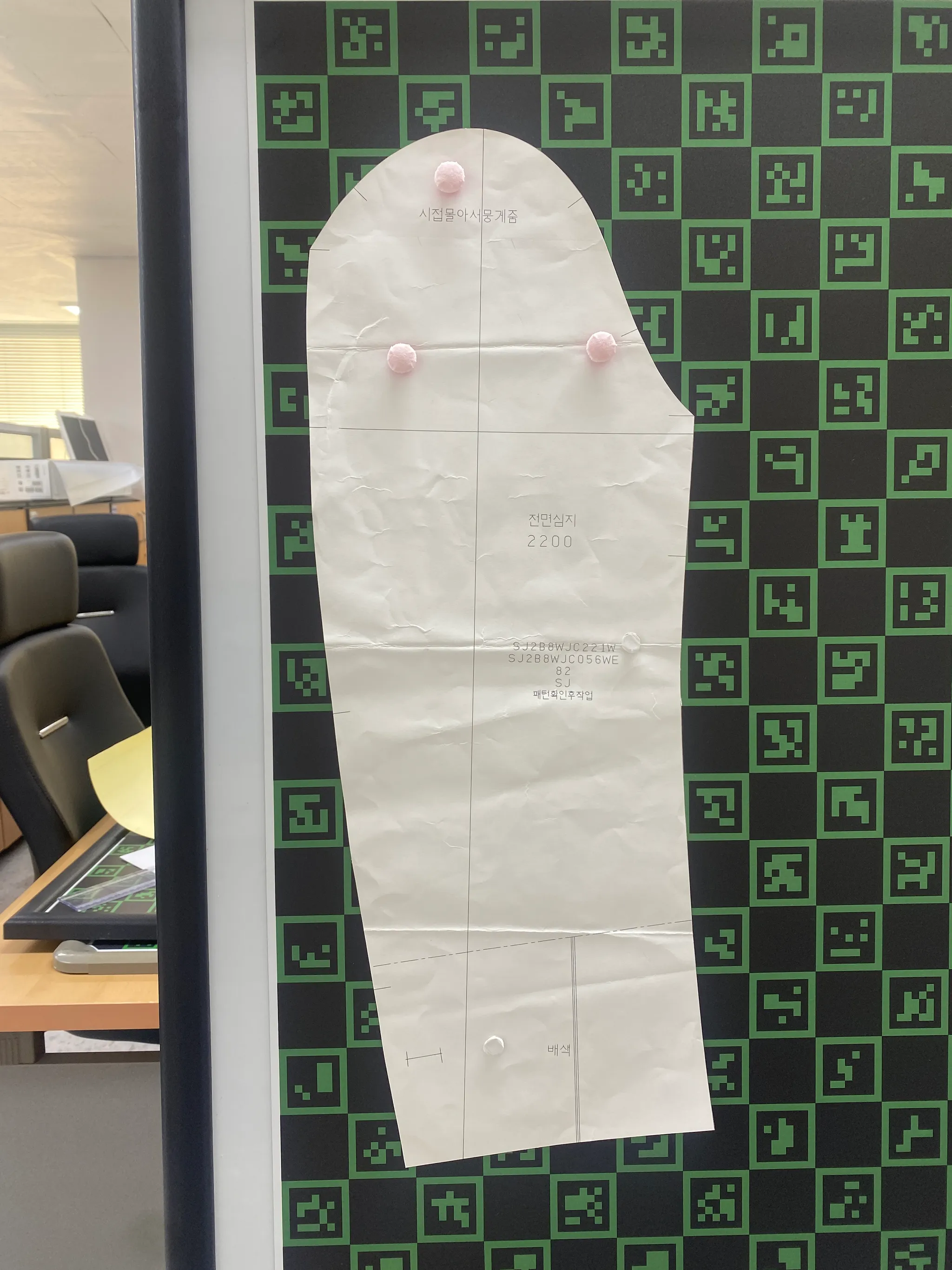 디토 보드 위에 종이 패턴이 구겨지지 않도록 자석으로 고정하여 붙입니다.