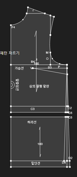 패턴을 자른 후 잘린 패턴의 식서 방향, 그레이딩 편차값 및 너치 등은 유지됩니다.