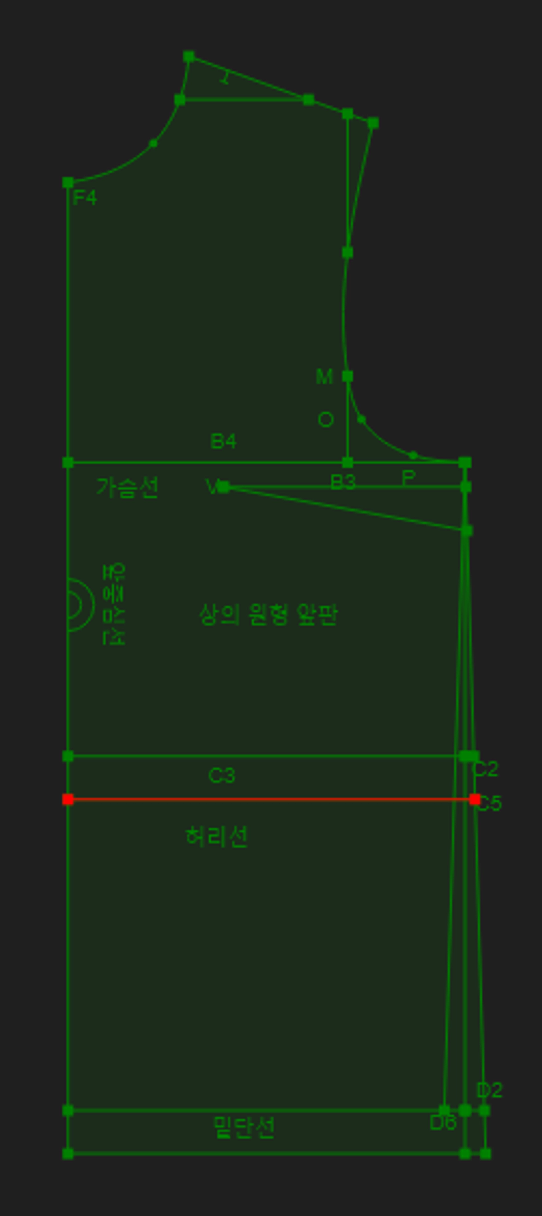 선택한 선은 빨간색으로 바뀌고, 마우스 오른쪽 클릭하면 패턴을 두 개로 자를 수 있습니다.