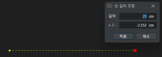 입력값에 따라서 미리보기가 바뀌며, 적용을 클릭하면, 선의 길이가 수정됩니다.