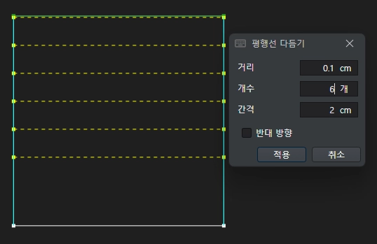 동일한 방법으로 입력하면 미리보기가 생성되고 적용을 클릭하면 평행선 다듬기가 완성됩니다.