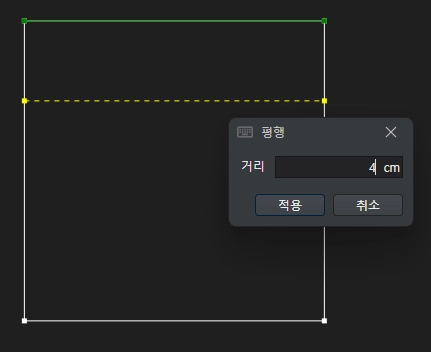 두 번째 자를 기준선을 선택하면 입력창이 뜹니다.