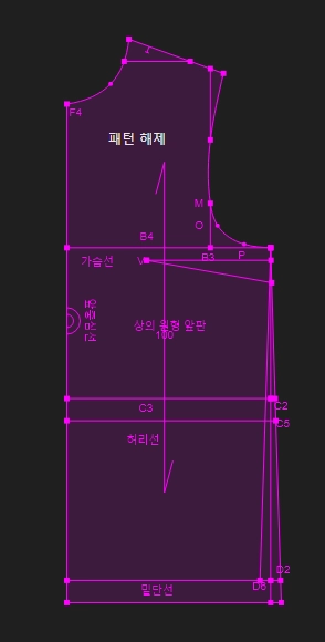 이동 시작점을 클릭하면 완성패턴은 회색으로 바뀌며, 식서표시가 자동으로 생성됩니다.