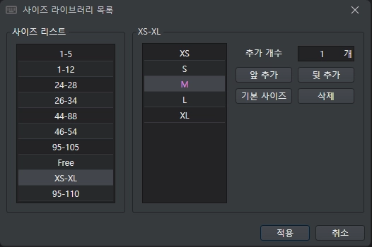 선의 길이(패턴 면적) / 갯수 / 현재 배율 / 사이즈 체계 / 단위계 / 사용자 / 버전 표시