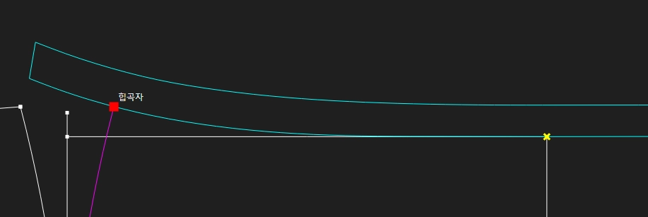 곡선자의 시작점을 선상 위의 점 중에서 선택합니다. 근처에 있는 곡선자가 따라와 붙습니다.