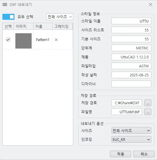 STYLE CAD(내보내기) → UTTU CAD(불러오기)