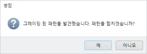 그레이딩된 패턴이 존재하는 경우 패턴 합치기 여부를 물어보는 팝업 창이 뜹니다.
