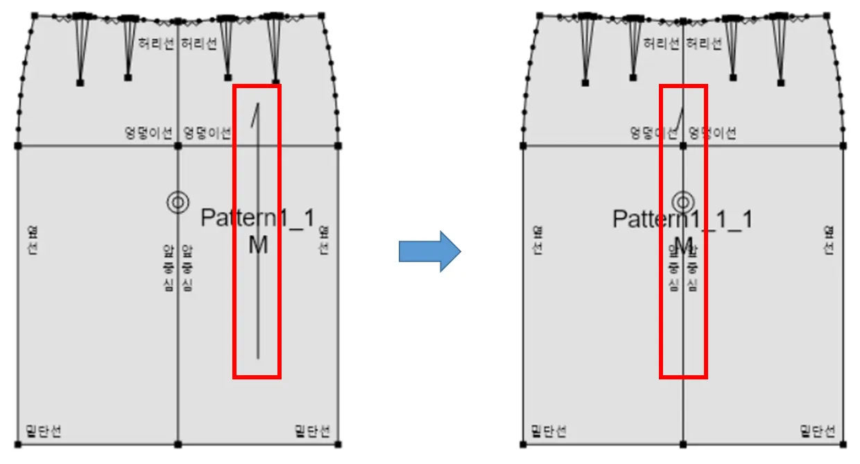 패턴 펼치기나 수정을 하면 식서가 중앙에 오지 않는 경우가 있습니다. 그러한 경우에 식서를 패턴의 중앙에 정렬하는 기능입니다.