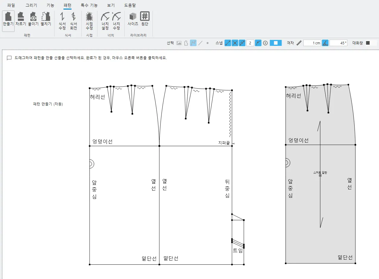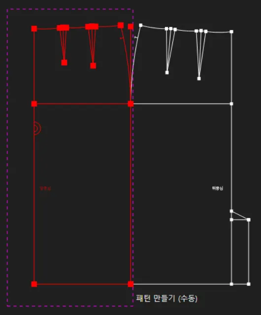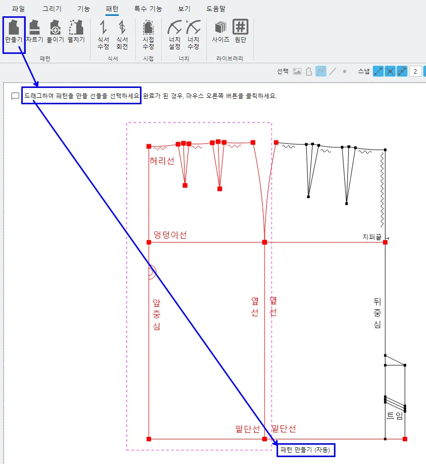 패턴 정보 입력하고 패턴을 고정하거나 이동하여 패턴 생성 완료
