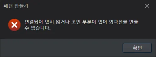 (“연결되어 있지 않거나 꼬인 부분이 있어 외곽선을 만들 수 없습니다”)