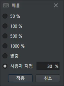선의 길이(패턴 면적) / 갯수 / 현재 배율 / 사이즈 체계 / 단위계 / 사용자 / 버전 표시