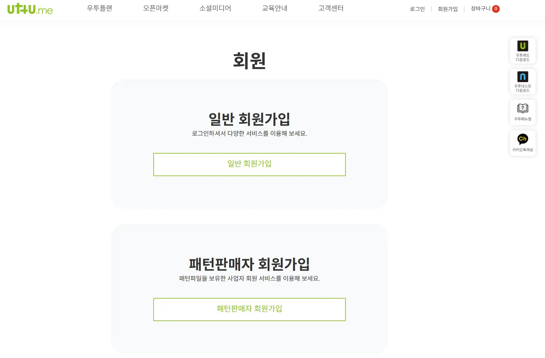 일반 회원가입과 패턴판매자 회원가입 중 하나를 선택합니다.