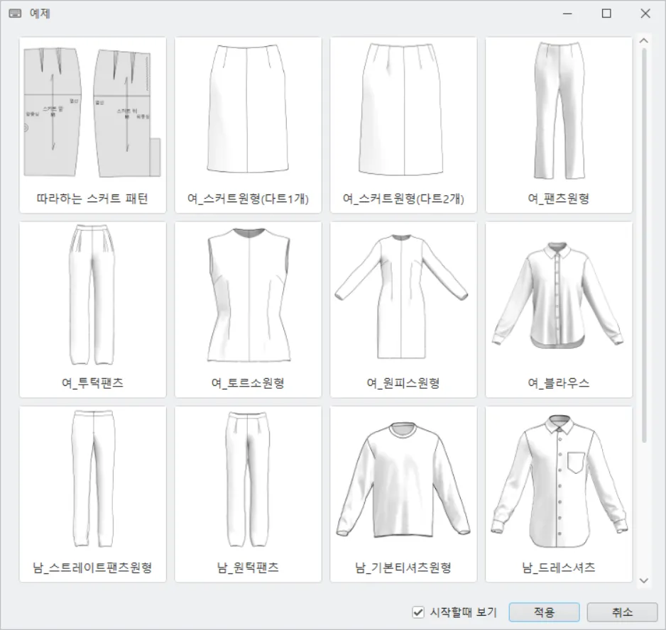 UTTU CAD 시작 시 팝업되는 예제 목록 창 표시