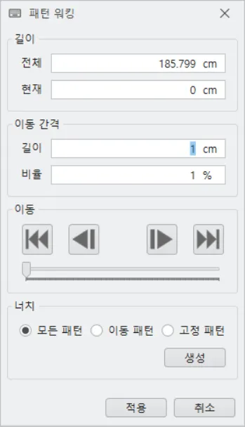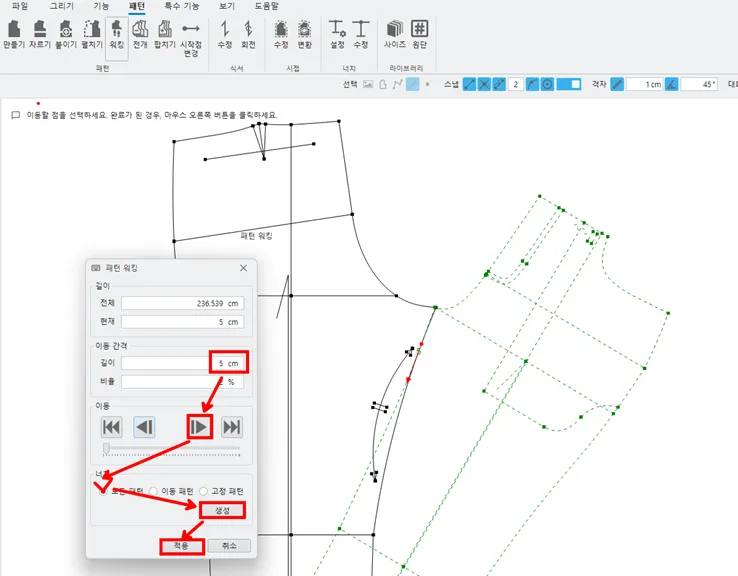 이동 간격을 설정하면 간격만큼 화살표 클릭으로 패턴이 이동합니다.