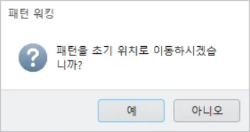 “예”를 클릭하면 이동 패턴이 초기 위치로 이동하고, “아니오”를 클릭하면 현재 위치에 놓이게 됩니다.