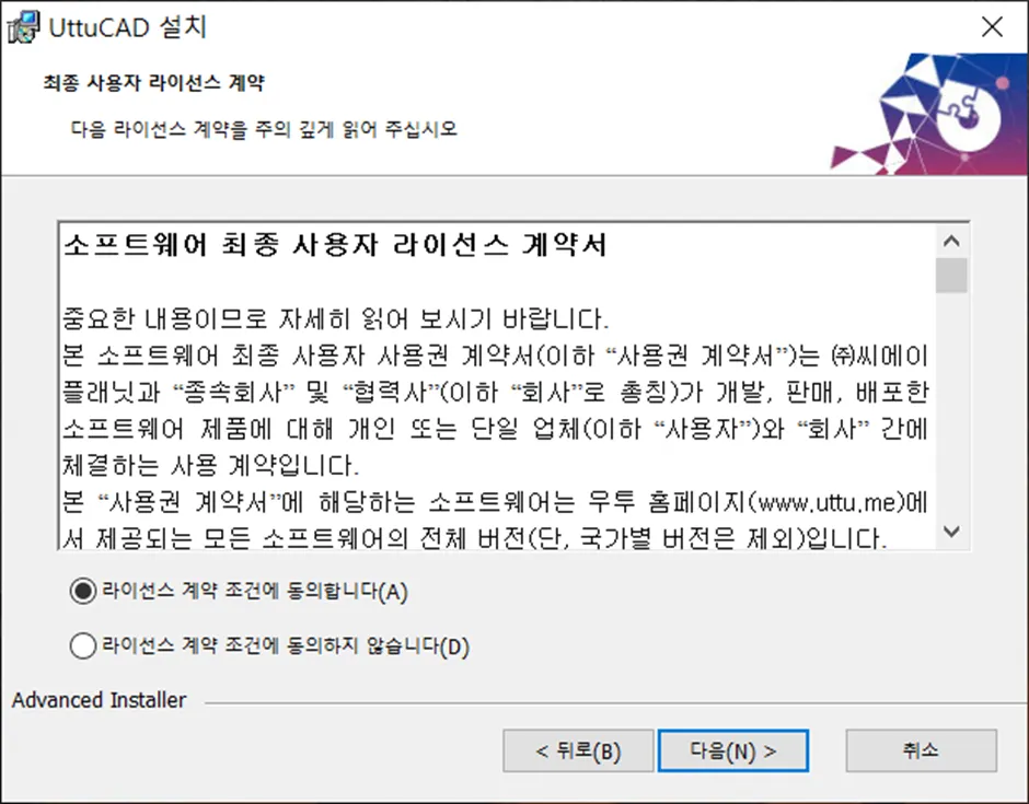 다운 받은 uttucad-1.13.0.0.msi를 더블 클릭하여 실행시킵니다.