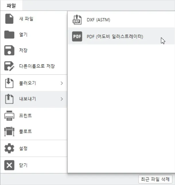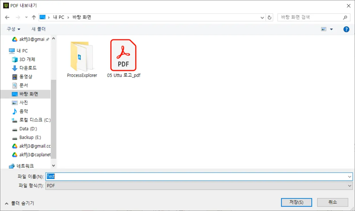 를 클릭하면 내보내기 창이 뜨고 파일 이름을 입력하면 확장자가 PDF인 파일이 생성됩니다.