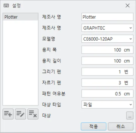 왼쪽 창에 자주 사용하는 플로터를 등록하고 사용하실 수 있습니다.