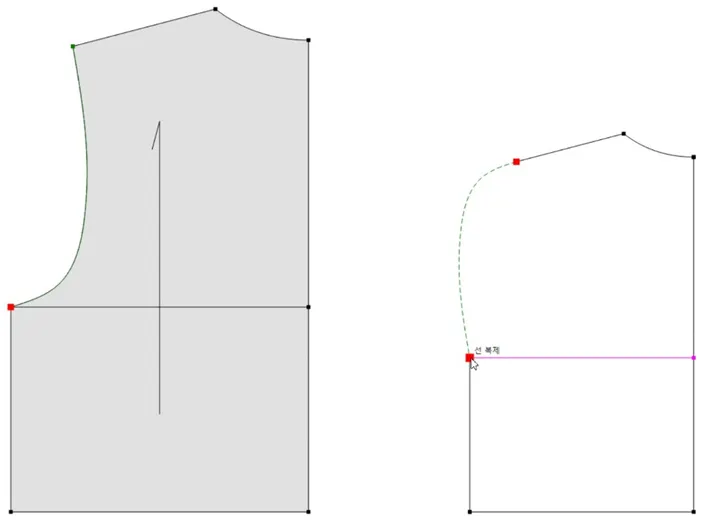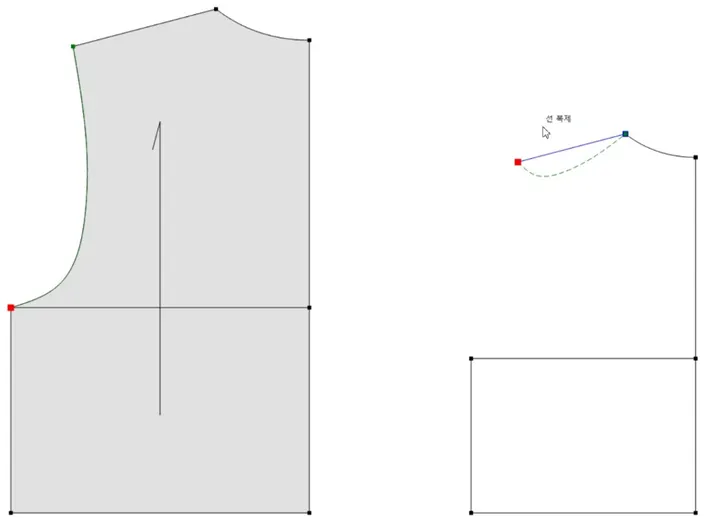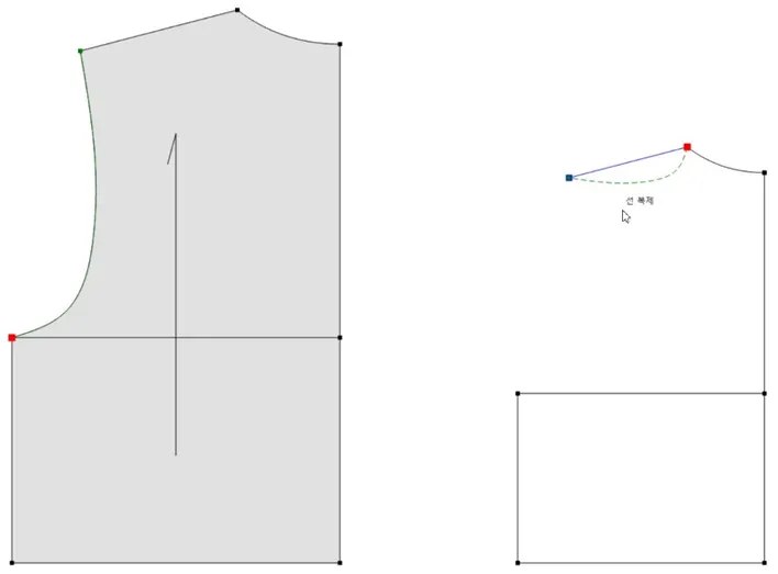 점 옵션일 경우 복사 대상인 두 점을 순차적으로 선택하면 선 복제가 실행됩니다.