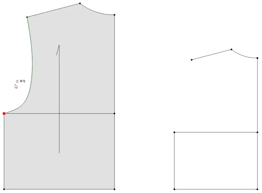 마우스 우클릭 하면 선택완료되며 선의 색상이 바뀝니다.