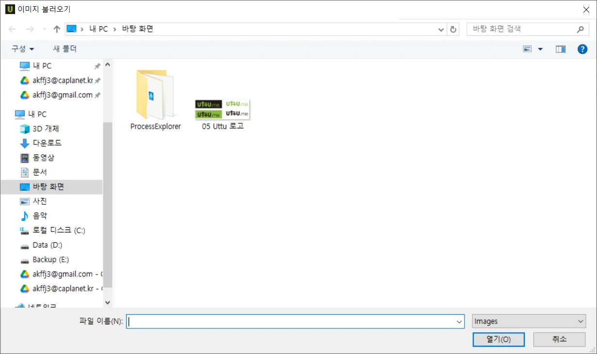 메뉴를 선택합니다. 탐색 창에서 이미지 파일을 선택하여 불러와서 사용합니다.