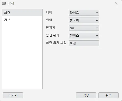 단위계 : 사용 단위계 선택 (mm, cm, inch-분수, inch-소수)