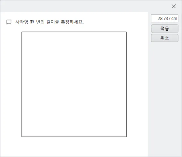 아래 창에서 사각형 크기를 실제 측정하여 오른쪽 칸에 입력하고 적용 클릭하여 사용