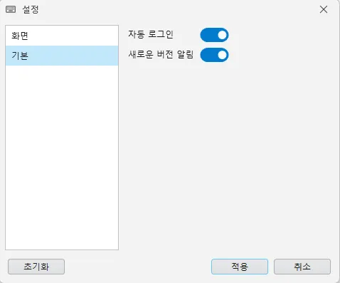- 시스템 : 윈도우 시스템 테마 모드에 맞추어 테마 색상 변경