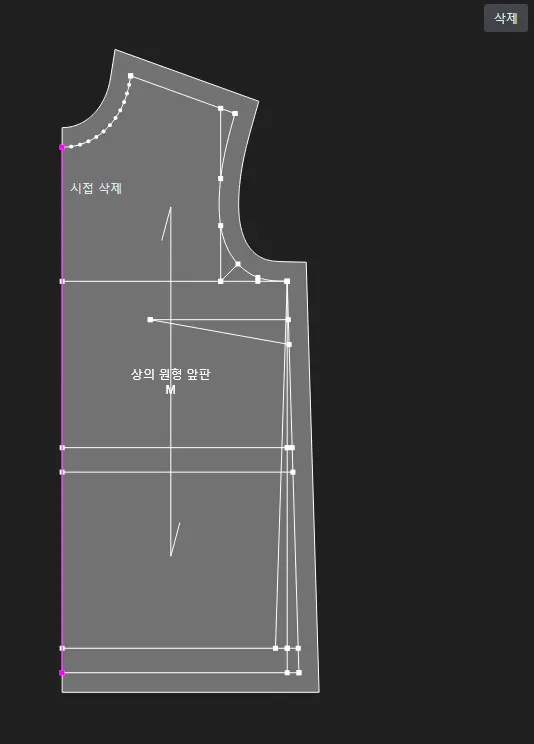 외부선을 선택하고 마우스 우클릭하면 대응하는 시접이 삭제됩니다.