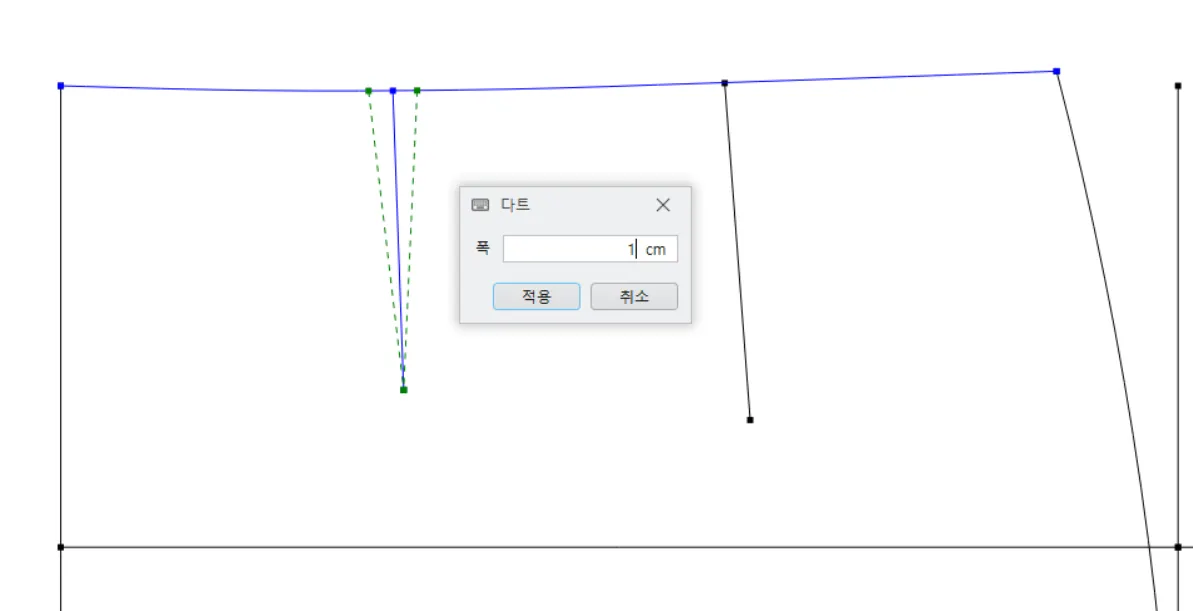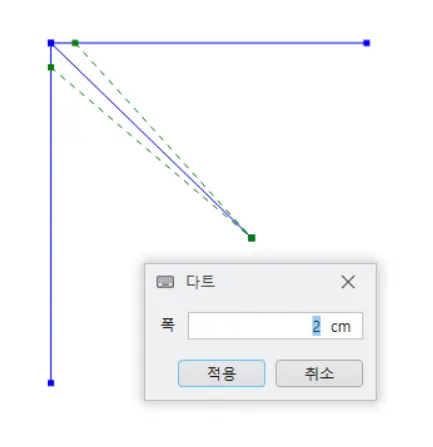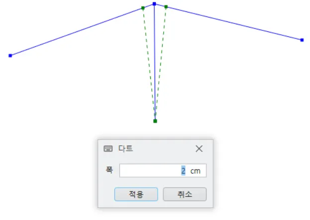 원하는 다트의 너비를 입력하면, 입력값에 따라서 미리보기가 바뀌며,