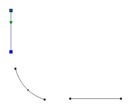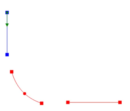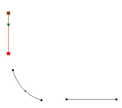 원하는 곡선/직선을 선택하면 빨간색의 기준점과 녹색 화살표가 나타납니다.