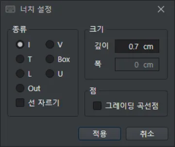 선 자르기 체크하면 플로팅 할 때 칼밥 생성
