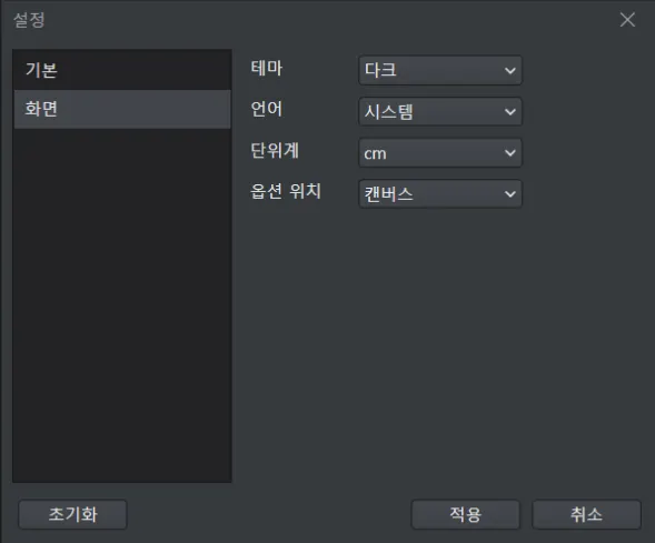 - 시스템 : 윈도우 시스템 테마 모드에 맞추어 테마 색상 변경