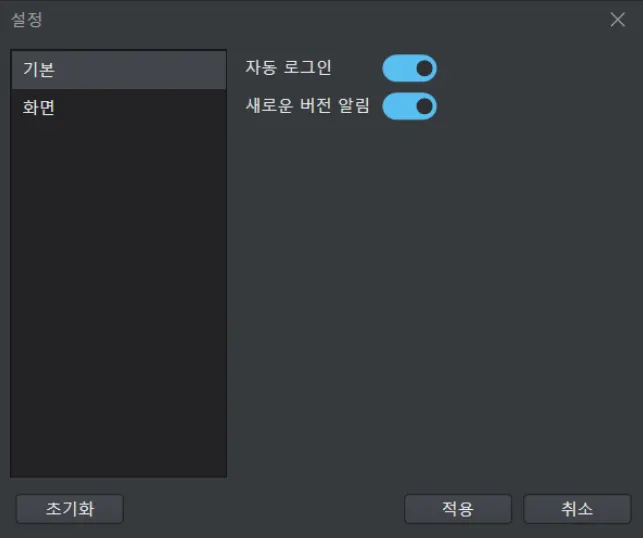 새로운 버전 알림 : 자동 업데이트 선택/해제